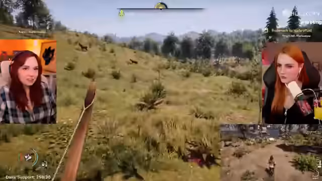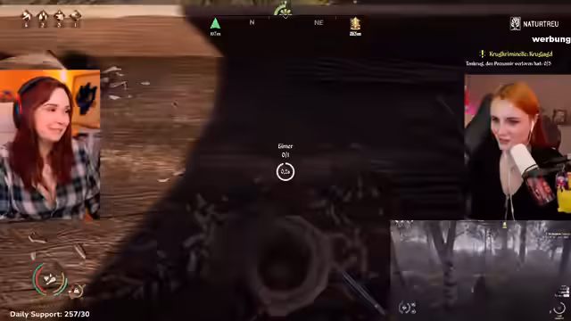 05:45:37Die Erkundung der Umgebung verläuft für den Streamer frustrierend, da er im Gegensatz zu seinem Mitspieler kaum Beute oder verwertbare Ressourcen findet. Diese frustrierende Situation führt zu einem Selbstgespräch über die Arbeitsteilung innerhalb der Dynastie. Dennoch gelingt ihm die Jagd auf einen Wolf, was ihm wertvollen Pelz einbringt, auch wenn er sich als geschwächt nach dem Kampf zeigt und seine mangelnde Nahkampffähigkeit beklagt.