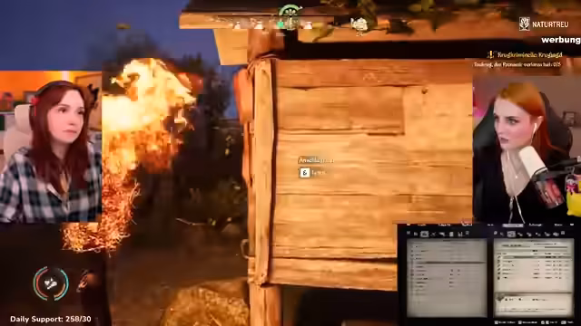 03:07:42Im Spiel wird die Handlung durch das plötzliche Auftreten von Steuerschulden für die Dorfgemeinschaft dramatisch gesteigert. Das Team muss unter Zeitdruck und Ressourcenmangel eine Lösung finden, ansonsten drohen Konsequenzen. Diesen im Spiel entstandenen Stress nutzt der Streamer, um auf realen Stress bei Twitch einzugehen. Er berichtet über einen deutlichen Rückgang der Viewerzahlen nach einem jüngeren Twitch-Update, was ihm große Sorgen bereitet und sein Selbstbewusstsein betrifft.