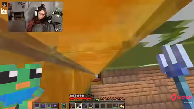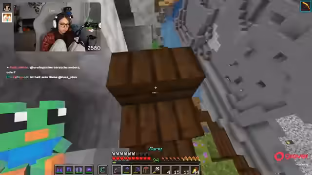 14:44:11Nach der Kritik an der blauen Farbe des Hauses reißt die Streamerin die blaue Fassade ab und ersetzt sie durch Holz. Sie ist unsicher, ob die Änderung eine Verbesserung darstellt und ob das Holz nicht zu viel ist oder das blaue Design doch besser war. Die Meinungen im Chat sind geteilt, was ihre Unsicherheit verstärkt. Trotz der Zweifel und des knappen Holzvorrats entscheidet sie sich, das rote Holz beizubehalten, da es besser zum Fantasy-Setting passt und der Aufwand für eine erneute Änderung zu groß wäre. Sie beginnt, kleine Details wie Buttons und Trapdoors hinzuzufügen, um das Haus zu verschönern und ihm einen mystischeren Touch zu verleihen.