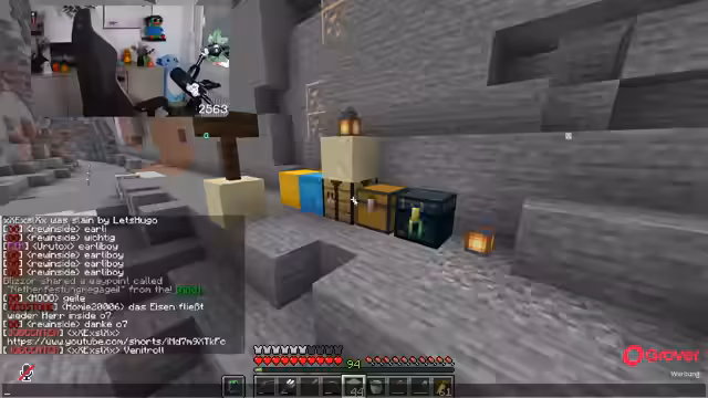 04:02:33Der Streamer plant die Anordnung weiterer Kisten in seinem Lager und überlegt, wie er den begrenzten Platz optimal nutzen kann. Er fragt sich, wie er die Kisten am besten platzieren kann, da kein Block voll ist. Während dieser Überlegungen wird die Gruppe „Sexhain“ erwähnt, eine ehemalige Frühschichtgruppe, die nach dem WoW-Gebäude Goldhain benannt ist und deren Name aufgrund seiner Verbindung zu SexRP beibehalten wurde. Später stößt Luke Oocraft zum Stream hinzu, ein neuer Teilnehmer bei Craft Attack, der sich bisher noch nicht getraut hat, mit anderen zu interagieren. Er wird von den anderen ermutigt, sich in Calls einzumogeln und Hallo zu sagen, da die Community sehr nett sei. Luke Oocraft erzählt, dass er hauptsächlich alleine baut und bisher noch keine Gelegenheit hatte, an einem RP-Arc teilzunehmen.