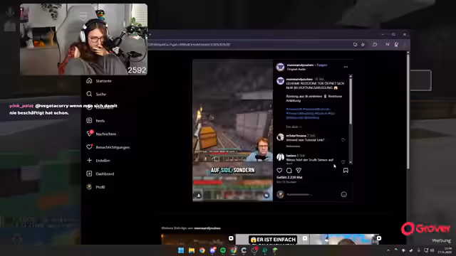 08:48:00Die Streamerin setzt sich das Ziel, bis Ende des Jahres 25.000 Follower zu erreichen, nachdem sie in den letzten drei Wochen von Craft Attack 3.000 Follower hinzugewonnen hat und aktuell bei 23.000 steht. Sie hält das Ziel für ambitioniert, aber nicht unmöglich, auch wenn sie die 'Primetime' des Events möglicherweise verpasst hat. Es wird diskutiert, dass sie als kleinerer Kanal später von mehr Leuten entdeckt werden könnte. Im Schnitt gewinnt sie 100 bis 200 Follower pro Stream, was sie als 'verrückt' und 'krass' bezeichnet. Sie möchte das Ziel erreichen, da 25.000 Follower einen wichtigen Meilenstein darstellen würden, besonders nach einer Phase von drei Jahren, in der sie bei 20.000 Followern stagnierte. Außerdem wird die Nicht-Einladung zu den Stream Awards thematisiert, was sie mit Humor nimmt und plant, eine Watchparty mit 'Uwe Talks' zu veranstalten, eventuell sogar schick gekleidet in ihrem Maskenball-Kleid. Sie betont, dass es ihr zweites Streaming-Jahr ist und sie nicht erwartet, sofort nominiert zu werden, da andere Creator mit größerer Reichweite den Vortritt haben sollten. Sie hofft auf eine Nominierung im nächsten Jahr.