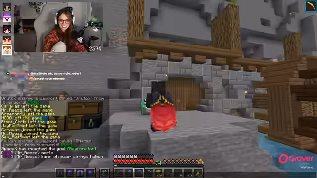 12:01:42Die Streamerin und ihre Gesprächspartner planen für den nächsten Morgen, etwas Schönes zu bauen, eventuell etwas in die Luft zu sprengen und die eingereichten Skins zu bewerten. Nach dem Abschied des Gesprächspartners ist die Streamerin wieder allein in der Gruppe und überlegt, eine andere Gruppe zu suchen. Es kommt zu technischen Problemen, bei denen das Spiel und der PC der Streamerin laggen. Sie versucht, die Probleme zu beheben, indem sie Chrome-Tabs schließt und eine zweite Minecraft-Instanz beendet. Währenddessen läuft Musik im Hintergrund, die ebenfalls von den technischen Problemen betroffen ist. Es kommt zu humorvollen Kommentaren über die schlechte Internetverbindung und die fehlende Kenntnis der Streamerin über ihre Downloadgeschwindigkeit, was zu einer Diskussion über die Bedeutung solcher Informationen führt.
