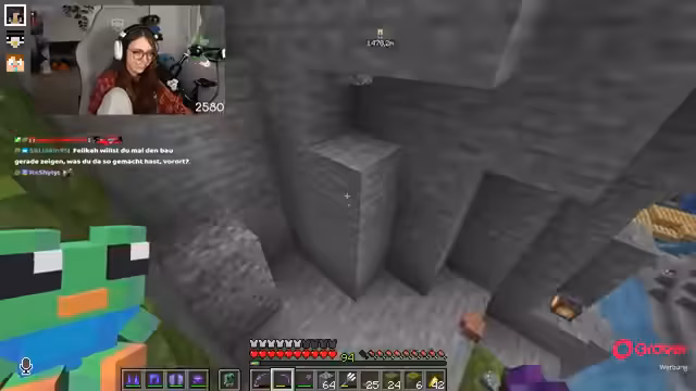 14:06:02Das Minecraft-Quiz wird erfolgreich gelöst, indem die letzte Kategorie von Gegenständen identifiziert wird, die alle Lichtlevel 15 haben. Die Streamerin äußert ihre Überraschung über die Schwierigkeit des Quiz. Anschließend kehrt sie zum Hauptprojekt zurück: dem Bau eines Hauses für Rewi in einer Schlucht. Das Haus soll einen zwergenähnlichen, mystischen Stil haben, ähnlich einem früheren Craft Attack Projekt. Sie zeigt den bisherigen Fortschritt und erklärt, dass sie sich von Pinterest-Bildern inspirieren ließ, aber auch eigene Elemente und Kombinationen hinzugefügt hat. Die Diskussion über das Durchmachen der Nacht für den Bau wird erneut aufgegriffen, wobei die Streamerin die Schwierigkeit betont, unter der Woche die Nacht durchzumachen.