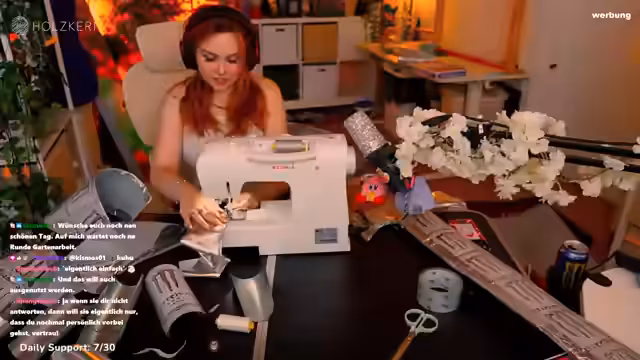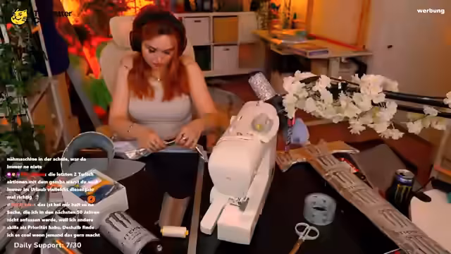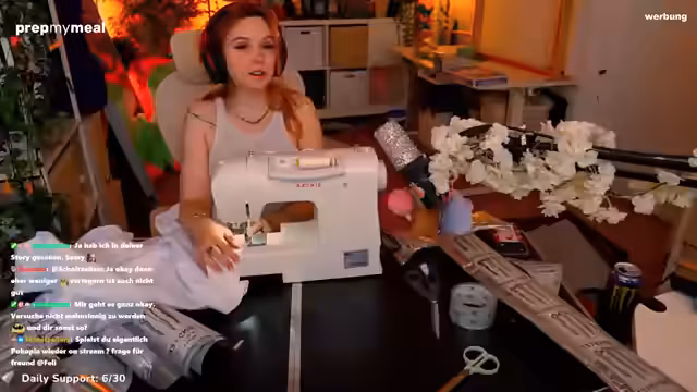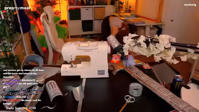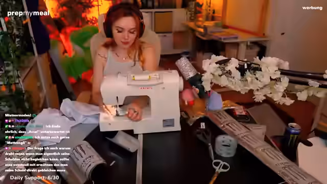 05:12:58Die Streamerin reflektiert über ihre Nähmaschine, eine Singer-Marke, die eigentlich mehr Funktionen bietet, als sie regelmäßig nutzt. Sie erwähnt ihre Leidenschaft fürs Nähen, die sie sich selbst beigebracht hat, und wie sich Cosplay-Projekte auf ihr Leben ausgewirkt haben. Sie diskutiert auch über die Schwierigkeiten mit stretchigen Stoffen und ihren Wunsch, nähte Fähigkeiten weiterzuentwickeln.