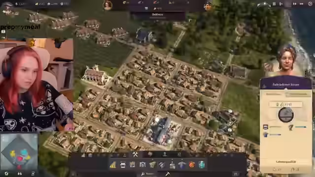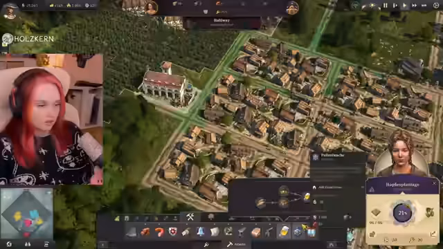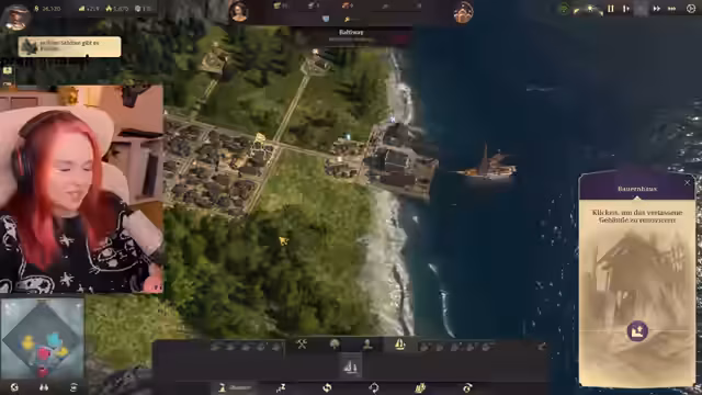 02:15:58Es wird eine Expedition in die neue Welt vorbereitet, was den Bau von Schiffen erforderlich macht. Die Streamerin dekoriert die Stadt und verschönert sie mit Kirschblüten und Parks. Es wird überlegt, ob DLCs für Anno gekauft werden sollen. Die Streamerin erklärt, dass die Frontpage zwar viele Zuschauer bringt, aber nicht unbedingt neue Chatter. Es wird ein Blumengebiet vor der Kirche angelegt, um die Stadt zu verschönern. Die Streamerin stellt fest, dass die Seifenproduktion angehalten ist und mehr Schnaps produziert werden muss, um den Export zu gewährleisten. Es werden weitere Bauernhäuser gebaut und idyllische Parks angelegt, um die Stadt zu verschönern. Die Streamerin plant den Bau einer Quarzgrube, einer Glashütte und einer Holzfällerhütte, um Fenster herzustellen.