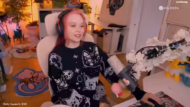 00:15:03Es werden Danksagungen für Follows, Bits und Subs ausgesprochen, während sie gleichzeitig auf Kommentare im Chat eingeht. Sie spricht über das Erreichen von Level 4 im Halbtrain und scherzt über Kommentare bezüglich ihrer Streamzeiten. Sie erklärt, dass sie oft früher streamt, um anderen zuvorzukommen, da sie sich als ruhigerer Streamer sieht und befürchtet, Zuschauer an actionreichere Streams zu verlieren. Es wird kurz überlegt, ob sie noch früher mit dem Streamen beginnen soll, verwirft die Idee aber wieder. Zudem wird kurz auf die Qualität von Holzkern-Produkten eingegangen, da einige Zuschauer nach ihren Erfahrungen fragen. Sie lobt die Marke basierend auf ihrem eigenen Schmuck von Holzkern und dem Feedback ihrer Community.