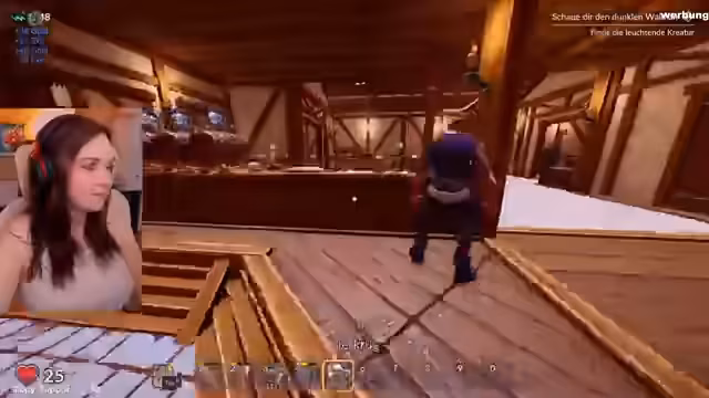 02:08:32Feli erfüllt die Quest zur betrunkenen Fee, leert ein Fass und stellt fest, dass die Quest erfolgreich abgeschlossen wurde. Anschließend wird die Taverne verwaltet: Tische werden platziert, Gäste bedient und Gerstenbrei gekocht. Es folgt eine Diskussion über die Tavernenroutine, die Kochprozesse und den Kauf von Utensilien wie Krügen und Tellern. Gleichzeitig wird ein Questbrett entdeckt, das Belohnungen für das Töten von Kreaturen bietet, wobei die Jagd nach Ebern geplant wird.