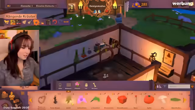 04:57:23Feli erkundet die Dekoworkshop-Funktionen: Sie skaliert Gegenstände, rotiert sie und speichert Vorlagen (z. B. einen 'Schraken'). Sie experimentiert mit Wänden, Böden und Beleuchtung, um die Atmosphäre der neuen Taverne zu gestalten. Trotz finanzieller Herausforderungen (sie nimmt erneut einen Kredit auf) richtet sie eine Bar mit Zapfanlagen ein und plant zusätzliche Dekorationen. Das Spiel ermöglicht detaillierte Anpassungen, die an Spiele wie 'Planet Zoo' erinnern.