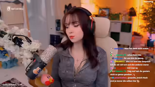01:31:38Feli geht auf eine Partnerschaft mit dem Supplement-Anbieter Naturtreu ein. Sie empfiehlt Vitamin D gegen Winterdepressionen und Vitamin C für das Immunsystem, besonders für Gamer, die wenig an die frische Luft kommen. Für Neukunden gibt es 15% Rabatt mit Code FELI-15, für Bestandskunden 10% mit FELI-10. Sie erwähnt, dass Naturtreu auch Produkte gegen Stress und für den Darm anbietet, und betont, dass Supplements ihr persönlich sehr geholfen haben. Die Einnahme von Vitamin D auf vollem Magen wird als wichtig beschrieben.