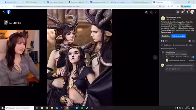 01:58:59Feli zeigt ihr altes Facebook-Profilbild aus ihrer Emo-Zeit: rote Kontaktlinsen, schwarze Haare mit Pony und der Schriftzug 'Willst du sterben?' auf Japanisch. Sie erklärt, dass sie mit 15 Jahren diese Phase hatte und damals auch Hunger-Games-Fan war. Neben Emo-Bildern präsentiert sie Cosplay-Fotos, darunter Judy Hopps, Etherwing Kale und Trujazoraka, die sie mit einem Tablet ihres Vaters aufnahm, da sie kein eigenes Handy hatte. Sie betont, dass Cosplay ihr einst als einzige Freunde diente und sie stolz auf ihre Kostüme ist, insbesondere auf einen selbstgebauten Helm aus Foam.
