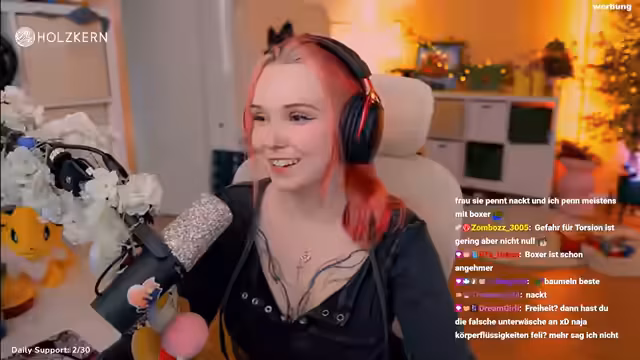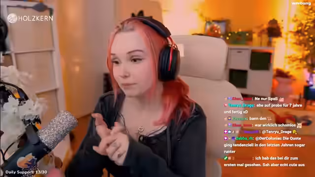 01:37:31Feli kündigt die Verlängerung ihrer Partnerschaft mit Holzkern bis Ende des Jahres an. Sie trägt regelmäßig Holzkern-Schmuck wie Ketten, Ringe und Armbänder und empfiehlt die Marke als Geschenkidee für Geburtstage oder Weihnachten. Mit dem Code 'FELIKERN' gibt es 15% Rabatt im Shop. Feli erwähnt, dass sie Holzkern bereits mehreren Freunden und Familie geschenkt hat und plant mögliche Giveaways für ihren Geburtstagsstream. Der Schmuck wird auch als stylisch für Männer hervorgehoben.
