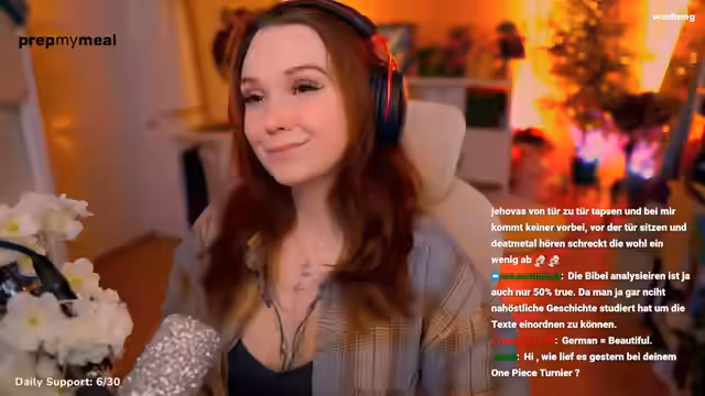 01:42:30Nach den Orakel-Lesungen bedankt sich die Streamerin für die Glückwünsche zu ihrem Twitch-Jubiläum und äußert sich kritisch zum Religionsunterricht in der Schule. Sie, als Atheistin oder Agnostikerin, empfand die zwölf Jahre Religionsunterricht an ihrer Privatschule als zu lang und zu stark auf das Christentum fokussiert, anstatt eine breitere Perspektive auf Weltreligionen zu bieten. Sie teilt auch ihre traumatischen Erfahrungen mit dem Abitur, das ihr bis heute Albträume beschert. Anschließend berichtet sie von ihrer Teilnahme an einem One Piece TCG-Turnier, bei dem sie 2-2 abschnitt. Sie erwähnt ihre Strategie, Frustbooster zu kaufen, um mit Niederlagen umzugehen und nicht 'salty' zu werden, was ihr hilft, Dopaminschübe zu bekommen und motiviert zu bleiben. Sie ermutigt die Zuschauer, One Piece TCG auszuprobieren und plant, auch Riftbound zu spielen, da sie bereits Starterdecks besitzt.