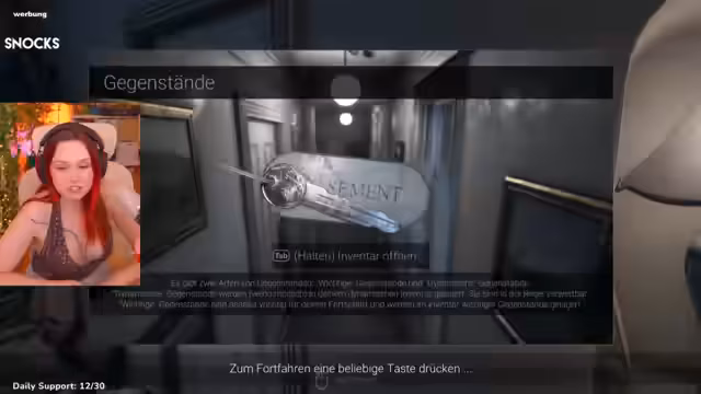 03:27:59Ein zentrales Element ist ein magischer Spiegel, der in ein anderes Zimmer des Hauses zeigt. Im dortigen Raum wird ein Schaukelstuhl entdeckt, der eine wichtige Rolle zu spielen scheint. Gleichzeitig konzentriert sich die Suche auf den Kellerschlüssel, der angeblich in der Jeans eines Bewohners versteckt ist. Der Streamer erkundet immer wieder das Erdgeschoss, wobei die Orientierung im großen Haus zunehmend verloren geht und unheimliche Geräusche von der Treppe oder vom Dachboden wahrgenommen werden, die die Spannung erhöhen.