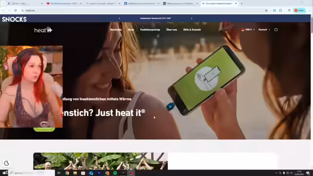 01:11:15Die Streamerin stellt eine Kooperation mit dem Produkt Hidet vor. Es handelt sich um ein kleines, am Schlüsselbund tragbares Gerät, das in das Handy gesteckt wird. Mittels einer App kann es erhitzt werden, um Mückenstiche zu behandeln und den Juckreiz zu neutralisieren, indem die juckreizerregenden Eiweiße in der Haut gespalten werden. Sie hebt hervor, dass es im Vergleich zu anderen, größeren Geräten ohne extra Batterie auskommt und ein perfektes Zubehör für den Sommerurlaub sei, um direkt nach einem Stich für Entspannung zu sorgen.
