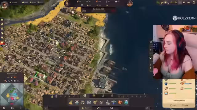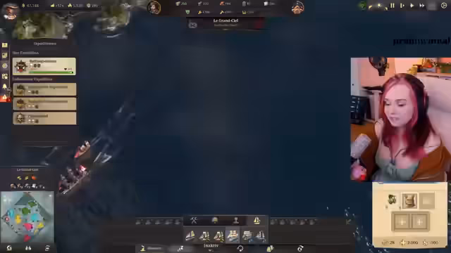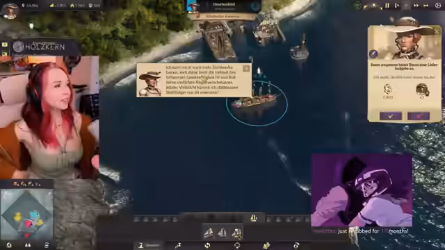 07:15:27Es gibt erneut Probleme mit der Seifenproduktion, die auf einen Mangel an Schweinen zurückgeführt wird. Es werden zusätzliche Schweinezuchten gebaut, um die Talgproduktion anzukurbeln. Die Streamerin erhält ein Sub-Geschenk und bedankt sich dafür. Eine Expedition in der neuen Welt wird fortgesetzt, während gleichzeitig Baumwollplantagen für die Poncho-Produktion errichtet werden. Es kommt zu einer militärischen Auseinandersetzung mit einem Piraten, für die die Streamerin widerwillig 60.000 Gulden zahlt, um einen Krieg zu verhindern. Es gibt Aufstände in der Bevölkerung aufgrund von Schnapsmangel, der durch den Transport von Schnaps und Ziegeln behoben wird. Die Streamerin plant den Bau eines Linienschiffs, benötigt dafür aber mehr Handwerker.