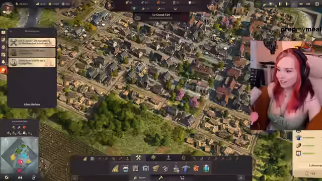 04:29:11Die Streamerin wundert sich, warum die Bilanz plötzlich negativ ist und die Leute keinen Karneval mehr feiern wollen. Sie baut zwei Rinderfarmen und will schauen, dass sie noch ein paar Menschen ansiedeln kann. Die Bilanz ist immer noch negativ, aber es geht noch. Die Streamerin braucht mehr Leute. Sie will die Fabrik nicht auf der Insel aufbauen, sondern beides exportieren. Die Arbeitskraft ist kritisch und die Wurstversorgung verschlechtert sich. Die Streamerin checkt nicht, warum. Sie baut mehr Bauernhäuser und hofft, dass die Leute einziehen. Die Leute haben plötzlich Bock auf Wurst. Die Streamerin baut weitere Häuser am Fluss und verbindet sie mit Straßen. Es mangelt an Arbeitskraft. Die Streamerin verbindet die Häuser und baut weitere Bauernhäuser. Sie fragt sich, warum sie mehr Würste braucht, obwohl vorher alles in Ordnung war. Sie vermutet, dass es daran liegt, dass sie ein Schiff baut und die Leute dort beschäftigt sind.