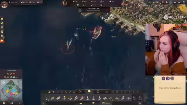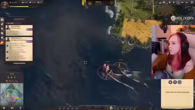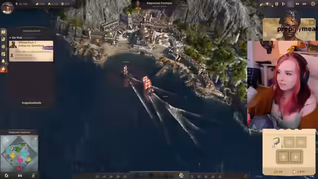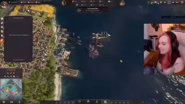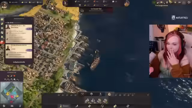 04:19:16Die Streamerin fragt, ob es Sinn macht, die Leute auf der Insel aufzuleveln und alle Bedürfnisse zu replizieren. Sie startet eine Geleitschutzaufgabe, bei der ein Schiff eskortiert werden muss. Das Kanonenboot hilft dabei, Piraten zu versenken. Die Streamerin fragt, wohin das Schiff überhaupt muss. Sie tendiert dazu, eine Konservenfabrik zu bauen und eine zweite Lehmgrube zu erschließen. Karl-Leonard von Malchik mag die Streamerin nicht und will nicht handeln. Die Streamerin überlegt, mit wem sie gute Beziehungen haben sollte, da sie sich nicht auskennt, welcher Ruf am wichtigsten ist. Sie entscheidet sich, erst mal keine Quests von Karl-Leonard anzunehmen. Da das Lagerhaus ausgelastet ist, wird ein weiteres Lagerhaus gebaut. Die Streamerin kommt ursprünglich aus Magdeburg. Sie baut einen Schoner, Rinderfarmen und Paprikafarmen auf einer Insel und will die Produkte auf ihre Maininsel exportieren. Sie ist überrascht, dass Schiffe Unterhaltskosten haben. Eine Freundin der Streamerin wohnt in Stendal.