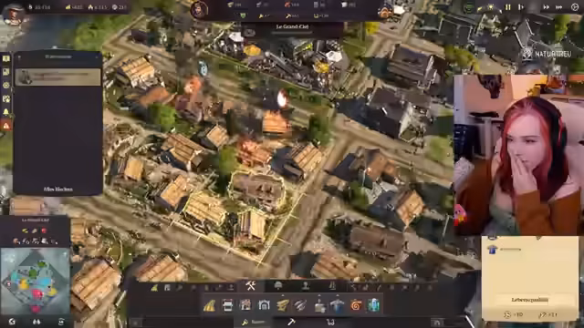 05:54:11Im Spiel bricht ein Feuer aus, und es dauert eine Weile, bis die Feuerwehr eintrifft, um es zu löschen. Die Streamerin spricht über die Notwendigkeit, die Würstchenproduktion zu steigern und levelt ein paar Leute ab, um mehr Einkommen zu generieren. Es wird festgestellt, dass es genug Würstchen gibt. Die Streamerin plant, in Kleidung zu investieren und baut Schäfchen und eine Spinnerei. Es wird überlegt, ob noch mehr Leute einziehen sollen. Die Streamerin drückt die Daumen für einen Zuschauer, der finanzielle Probleme hat. Sie freut sich über eine Einwohneraufgabe und erhält eine Bootsfrau mit Schadensverlangsamung. Es wird überlegt, wie die Bootsfrau und Captain Khadija am besten auf den Schiffen eingesetzt werden können.