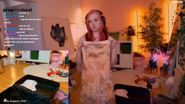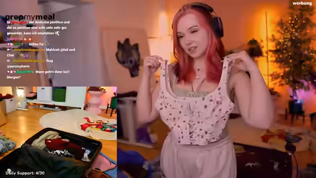 02:05:52Die Streamerin hat bereits Vakuumbeutel für die Reise eingepackt. Es wird überlegt, das Top bereits auf dem Flug unter einem Pulli zu tragen. Das Zwiebelprinzip wird für das Flugzeug bevorzugt, um auf wechselnde Temperaturen reagieren zu können. Ein leerer Koffer wird nicht mitgenommen, stattdessen soll in Japan ein weiterer Koffer gekauft werden. Die Speicherkarte darf auf keinen Fall vergessen werden. Als Anreiz für Unterstützer wird überlegt, Postkarten aus Japan zu verschicken. Der Katzenpulli soll im Flugzeug getragen werden. Die Sim-Karte von Melen Soda ist auch dabei. Ein Oberteil im Vintage-Stil mit Wasserfall-Seide, das gut zu den Haaren passt, wird als unverzichtbar eingestuft. Trotz des erwarteten Regens und warmer Temperaturen sollen ein kurzer Rock und Safety Pants mitgenommen werden. Ein Lederrock wird aufgrund des Materials ausgewählt, passend zu einem Oberteil, das bereits auf der Gamescom getragen wurde. Es wird gezählt, wie viele Outfits bereits zusammengestellt wurden, um das Ziel von zehn Outfits zu erreichen. Bisher sind es sechs bis sieben Outfits, also werden noch drei weitere benötigt. Ein langes Kleid mit Taschen und Schlitz wird als komfortable Option hinzugefügt. Ein passender Cardigan muss noch in Japan gekauft werden. Die Streamerin nimmt 10 Outfits für 16 Tage mit.