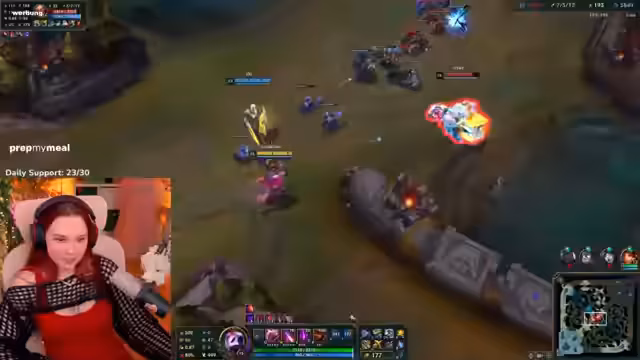 04:47:48Der Stream beginnt mit intensiven League of Legends-Spielszenen, in denen die Streamerin über strategische Entscheidungen und Fehler spricht. Sie ist unzufrieden mit ihrer eigenen Performance, da sie keine klaren Vorteile aufbauen kann und ständig in schwierige Situationen gerät, die sie als 'katastrophal' und 'crazy' beschreibt. Sie analysiert ihre Spielzüge, wie zum Beispiel einen 'saftigen Shutdown' und Rettungsaktionen durch Mitspieler wie Cillian, und reflektiert über ihre Entscheidung, häufig Auto-Attacks abzubrechen, was sie als einen ihrer größten Fehler identifiziert, der sie Schaden kostet.