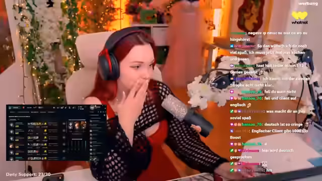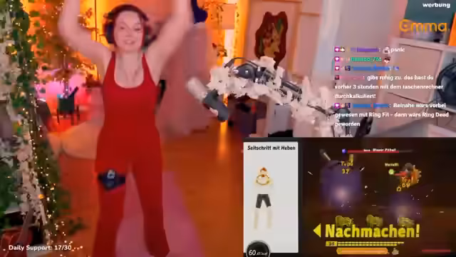 00:29:42Der Stream ist von einer Serie ungewöhnlicher Verletzungen unter den Zuschauern geprägt. Ein Viewer hat eine Sehnenscheidenentzündung, ein anderer verletzte sich am Arm. Die Streamerin fragt nach den Ursachen und kommt zu dem Schluss, dass sowohl Bowling als auch das Spielen von League of Legends mögliche Auslöser sein könnten. Trotz oder gerade wegen dieser Verletzungen bleibt das geplante Sportprogramm mit Ringfit der Kern des Streams, was auch ihre eigene Motivation zeigt, trotz einer möglichen Rippenblockade zu trainieren.
