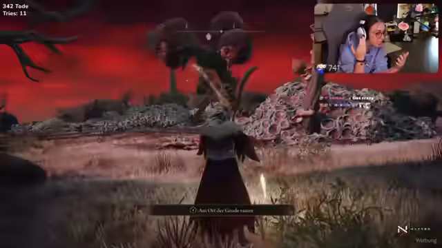 01:32:40Nach einigen Level-Up-Aktionen und dem Gefühl, etwas besser vorbereitet zu sein, entschied sich Streamer, das rote Gebiet zu erkunden. Dieses Gebiet stellte ihn vor neue, stärkere Gegner und war visuell und atmosphärisch anders als die bisherigen Areale. Er war unsicher über die genauen Ziele und suchte nach weiteren Bossen oder Siegel-Gefängnissen, während er sich durch die ungewöhnliche Welt navigierte.