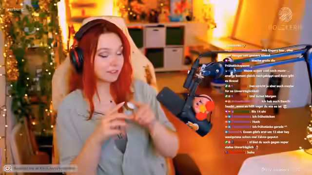 00:10:03Es wird ein neuer, hellerer Hintergrund durch eine Kameraumstellung vorgestellt, was die Notwendigkeit starker Beleuchtung reduziert. Es werden Zuschauer begrüßt und sich für Follows und Abonnements bedankt. Es wird über French Nails, ein Fotoshooting mit Luise und einen Ring von Holzkern gesprochen, wobei der neue Rabattcode 'Feli Kern' erwähnt wird. Die Motion Sickness Problematik bei schnellen Tag- und Nachtwechseln in Spielen wie Aloft wird thematisiert und die Unzufriedenheit darüber geäußert, dass man dies in manchen Spielen nicht deaktivieren kann. Es wird über eine Darmkur gesprochen, um Bauchbeschwerden zu reduzieren, und Erfahrungen mit Nahrungsmittelunverträglichkeiten ausgetauscht. Die Zuschauer werden nach ihrem Frühstück und ihrem Wohlbefinden befragt und es wird sich über die Gesundheit und die Notwendigkeit von Vitaminen und einer ausgewogenen Ernährung ausgetauscht.
