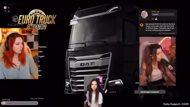 05:57:39Es wird über NPC-Streams diskutiert, bei denen Streamer wie Spielfiguren agieren und auf Spenden mit bestimmten Aktionen reagieren. Die Streamerin erwähnt eine Dokumentation über einen erfolgreichen NPC-Streamer und die Schwierigkeit, Freunden und Familie dieses Konzept zu erklären. Sie betont jedoch, dass man das machen sollte, was Spaß macht und womit man seinen Lebensunterhalt verdienen kann. Die Streamerin äußert den Wunsch, mit einem Lenkrad zu truckern, hat aber Angst, ihren Fortschritt zu verlieren. Sie und Helen haben den Zuschauern Lust auf ETS-DV gemacht, und es wird über die Vor- und Nachteile von Lenkrädern diskutiert. Die Streamerin ist fast aus den Schulden raus, aber muss immer noch einen Kredit zurückzahlen. Sie schlägt vor, Trucker als Format durchzuziehen, aber Helen interessiert sich mehr für Farming Simulator, besonders wenn es Tiere gibt. Die Streamerin gibt nach und erklärt, dass sie sich Farming Simulator zuwenden wird.