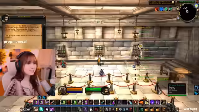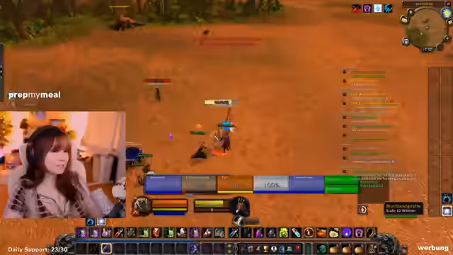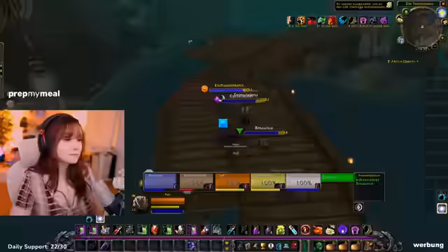 00:08:20Der Stream beginnt mit einer Diskussion über die gestrigen Todesfälle im World of Warcraft Hardcore-Stream von Rico. Sie wurde von einem Elite-Mage mit nur vier Schadenstreffern getötet, was die hohe Gefahr bei geringen Leveln verdeutlicht. Viele andere bekannte Streamer wie Salty Dane sind ebenfalls gestorben. Feli berichtet, sie habe wegen ihrer WoW-Sucht oft zu wenig Schlaf und musste kürzlich ihre Prioritäten neu justieren, als sie sich entschied, zuerst ihren Kater Chonk zu kuscheln, bevor sie mit dem Stream begann. Sie plant, aufgrund des gestrigen Abschieds von Rico einen sehr langen Stream von bis zu 12 Stunden zu absolvieren.