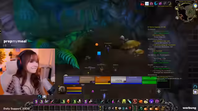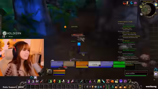 01:39:40Bei der Bearbeitung der Druiden-Prüfung des Seels wird der Streamer mit technischen Problemen konfrontiert. Er lootet das Quest-Item 'Scheinschmuckstück', es taucht aber nicht in seinem Inventar auf. Nachdem er die Quest aus dem Chat neu geladen hat, beginnt ein hektisches Zeitrennen. Er hat das Item gefunden und muss es nun in 30 Minuten zum Schrein von Remulos in Moonglade bringen, bevor es despawnt. Dieser Stress steht im Kontrast zu der eigentlich entspannten Quest.