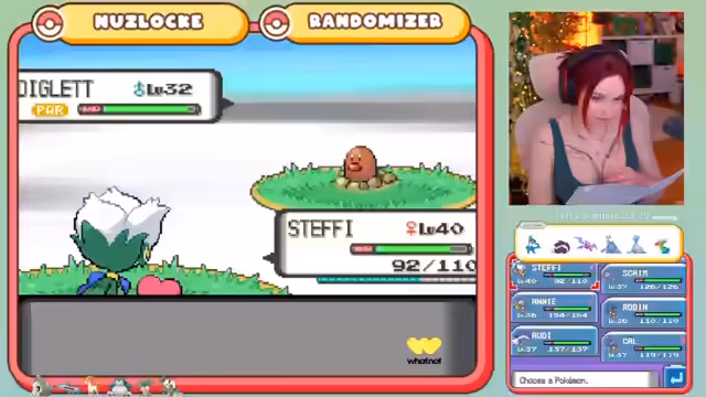 04:40:53Ein Elektro-Pokémon erscheint, worüber sich sehr gefreut wird. Es wird beschlossen, es Sepp zu nennen. Es wird überlegt, das Team umzubauen und Robin durch Sepp zu ersetzen, da Robin als weniger nützlich angesehen wird. Eine Ast-Trainerin namens Olivia wird bekämpft. Megadrain richtet wenig Schaden an, aber Steffi bleibt im Team, da sie Elektro-Attacken widersteht. Ein Shrew wird als Eis-Pokémon identifiziert, und Kel wird als Konter eingesetzt. Ein Trainer wird besiegt, und Geld für neue Ultra-Bälle wird verdient. Steffi wird ausgewechselt, aber für wilde Pokémon vorne gelassen. Eine neue Route wird entdeckt, und eine neue Prediction wird gestartet. Es wird über Shadow Claw diskutiert. Ein wildes Dilli erscheint. Es wird überlegt, Robin zu opfern, um Annie vor einer Explosion zu schützen. Brian wird untersucht, aber Surfer wird vorgezogen. Es wird sich bei den Zuschauern entschuldigt, die auf Ja gesetzt haben. Ein Pokéball wird gefunden.