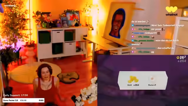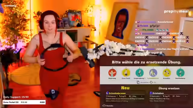 01:42:02Im Stream konzentriert sich Feli auf das Spiel 'Ring Fit Adventure', bei dem sie verschiedene Bosse und Herausforderungen meistern muss. Sie berichtet von knappen Siegen und knapp verpassten Zielen, zeigt aber großes Durchhaltevermögen. Feli nutzt verschiedene Strategien und Items wie Tränke, um ihre Charaktere zu heilen und Schaden zu verursachen. Ihr Engagement und ihre positive Einstellung trotz Rückschläge motivieren ihre Zuschauer und schaffen eine unterhaltsame Atmosphäre im Stream.