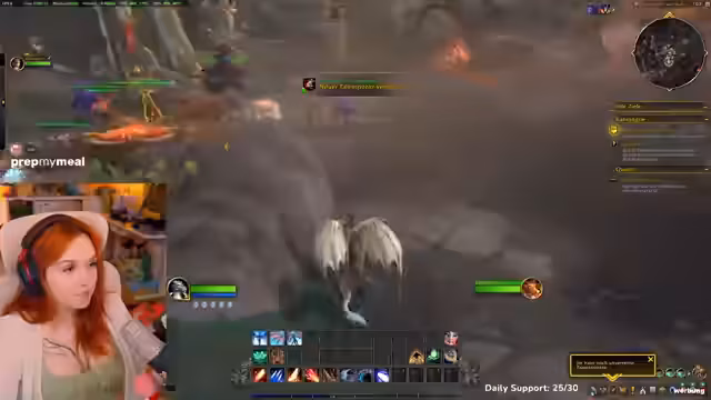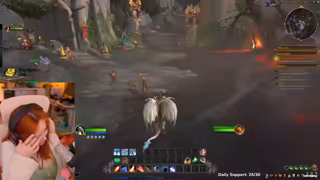 04:00:38Während des Spielens wird ein gemeinsamer Charakter als Drache gespielt, der sich durch das Einnehmen von Quests auf Stufe 15 entwickelt. Dabei wird die Kampagne als weniger linear im Vergleich zu WoW Classic empfunden. An anderer Stelle sucht der Streamer vergeblich nach einem Cosplay-Foto, um es zu zeigen, und reflektiert über anstrengende Cosplay-Erfahrungen. Spielerisch werden verschiedene Fähigkeiten wie 'Steine werfen' getestet und kleine Kämpfe mit Monstern bestritten. Die Freude am Spiel steht im Kontrast zu den anhaltenden technischen Schwierigkeiten und der mentalen Belastung des Streams.