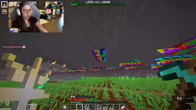 06:49:32Es wird festgestellt, dass eine Wasserquelle für viele Felder ausreicht. Die Hühner bleiben im Gras hängen, was zu zweideutigen Kommentaren führt. Der Soundtrack von Minecraft wird gelobt, insbesondere die neue Platte 'Precipice'. Es folgt ein Gespräch über das Kommen, das zweideutig interpretiert wird. Die Hühner verstecken sich im Gras, was das Treffen erschwert. Es wird vermutet, dass das Töten mit dem Schwert die Droprate der Federn beeinflusst. Der Wunsch nach einem gemeinsamen Stream mit Kedos wird geäußert, um die 'Scheiß-Anfall-Dinger' zu sehen. Es wird festgestellt, dass die Hasen sich ebenfalls schwer treffen lassen und im Fels flüchten. Der Bau des Feldes gestaltet sich schwierig und es wird überlegt, Gras zu kaufen.
