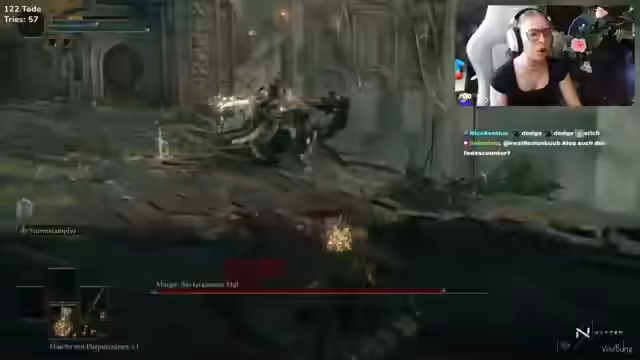 01:52:44Nach einer Reihe intensiver Kämpfe gegen Margit, in denen der Streamer sowohl Erfolge als auch Rückschläge erlebt, wird eine kurze Pause eingelegt, um Musik zu hören und sich neu zu sammeln. Es folgen weitere Versuche, Margit zu besiegen, wobei der Streamer verschiedene Taktiken ausprobiert und sich über verpasste Gelegenheiten ärgert. Er analysiert Margits Angriffsmuster und versucht, seine eigenen Reaktionen darauf zu verbessern. Dabei äußert er sowohl Begeisterung über gelungene Aktionen als auch Frustration über Fehler und ungünstige Spielsituationen. Der Streamer spricht auch über die Schwierigkeit, die eigenen Emotionen während des Kampfes zu kontrollieren, und wie diese die Leistung beeinflussen können. Es wird deutlich, dass der Kampf gegen Margit nicht nur eine spielerische Herausforderung ist, sondern auch eine mentale und emotionale Belastung darstellt. Trotzdem bleibt der Streamer fokussiert und versucht, aus jedem Versuch zu lernen, um seine Strategie zu optimieren und Margit letztendlich zu besiegen.