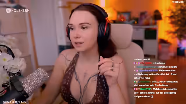 05:18:21Nach einer aufregenden Fahrt erreicht die Gruppe eine Farm, die jedoch nicht besonders einladend wirkt. Die Streamerin, die sich als „Bambis Mom“ verkleidet hat, spielt ein Horrorspiel und äußert ihre Ängste vor falschen Entscheidungen im Spiel, was die Spannung erhöht. Sie bemerkt, dass Clementine, eine weitere Figur, ebenfalls etwas schiebt, und die Babysitterin wieder aufgetaucht ist. Die Farm wird als unsicher empfunden, obwohl das Auto zumindest ein bisschen Schutz bietet. Die Konversation dreht sich um das Horrorspiel und die damit verbundenen Ängste, wobei auch Vergleiche zu anderen gruseligen Spielen wie Fallout gezogen werden. Die Streamerin ist unsicher, ob sie in einer Scheune schlafen möchte, und es wird erwähnt, dass Hanse im Urlaub als „Alman“ verkleidet war, was für Heiterkeit sorgt. Die Diskussion über Jogginghosen beim Einkaufen zeigt eine lockere Atmosphäre, während die Streamerin ihre Katze Chonk als Halloween-Deko präsentiert.