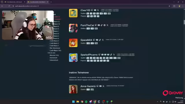 00:38:53Die Streamerin blickt auf ihre Anfänge bei Craft Attack zurück und wie schnell ihre Zuschauerzahlen gestiegen sind. Sie vergleicht ihre durchschnittlich 47 Zuschauer zwei Wochen vor Craft Attack mit den 604 Zuschauern während des Projekts und betont, wie schnell man den Bezug zu diesen Zahlen verliert. Sie schaut sich alte VODs an und kommentiert ihr Aussehen und die alte Kameraeinstellung. Es werden Erinnerungen an Diawars geweckt, ein Event, bei dem sie mit Tobi in einem Team war und das im XP in Hamburg stattfand. Sie erinnert sich daran, wie cool es war, in den Streamingräumen zu sitzen. Die Streamerin scrollt durch die alten Craft Attack-Streams und kommentiert verschiedene Ereignisse und Personen, die sie kennengelernt hat. Sie erinnert sich daran, dass sie viele Teilnehmer noch nicht persönlich kannte und sich daher unwohl fühlte.
