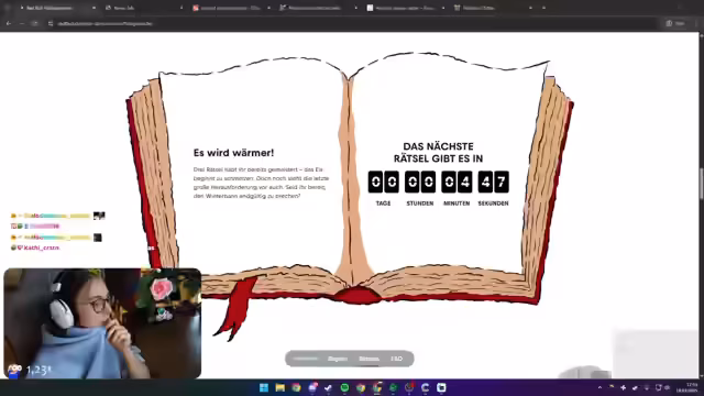 00:25:16Bei der Lösung der Rätsel ist die aktive Mithilfe der Chat-Community von entscheidender Bedeutung. Ein Chatter, Valentin, liefert entscheidende Hinweise für die Twitter-Suche. Die Community diskutiert über mögliche Bedeutungen von 'Prolex-Tag' und kommt auf die Idee des 'Daumens' (Pollex). Der Streamer ist dankbar für die Unterstützung, da die Rätsel seine eigenen Fähigkeiten übersteigen, und die Zusammenarbeit wird als gelungen angesehen.