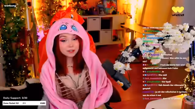 00:12:00Feli interagiert intensiv mit den Chat-Teilnehmern, stellt ihre Alerts vor und erklärt, dass Links ohne Erlaubnis nicht erlaubt sind. Sie erwähnt verschiedene Pokéball-Alerts und gibt Einblicke in ihr Twitch-Setup. Dabei macht sie klar, dass sie trotz ihres People-Pleasing-Verhaltens manchmal nein sagen muss, und erzählt von ihren persönlichen Herausforderungen mit Schüchternheit außerhalb des Streams.