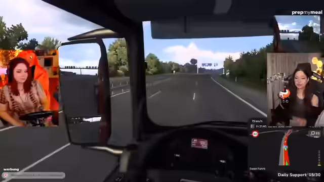 05:13:20Feli startet mit dem Euro Truck Simulator 2 und zeigt, dass er es mit einem Lenkrad einrichtet, was die Erfahrung deutlich angenehmer macht. Sie nimmt Helen mit auf gemeinsame Trucking-Touren, obwohl sie immer wieder Unfälle verursacht und in die Schulden rutscht. Trotzdem werden beide von den verlockenden Aufträgen und der Möglichkeit, in die Schweiz zu fahren, angezogen, da diese 22.000 Euro einbringen könnten.