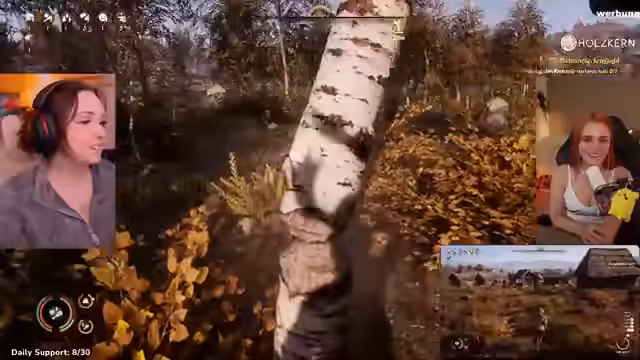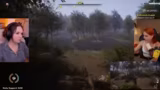 02:16:42Nachdem die Fischjadge am See wenig erfolgreich war, wird die Jagd auf Rehe und Hirsche fortgesetzt. Dank einer verbesserten Taktik, bei der der Jäger sich von hinten an die Tiere heranschleicht und den Speer in den Popo wirft, gelingt es, mehrere Tiere zu erlegen. Ein Hirsch wird sogar mit dem Speer verwundet und der Streamer folgt dem Blutspur, um ihn auszunehmen. Mit 20 Fleischstücken kehrt der Streamer ins Dorf zurück. Das Fleisch wird getrocknet und im Nahrungsmittellager deponiert, um die Dorfbewohner zu versorgen. Gleichzeitig erfährt das Streamerpaar, dass sie ein Kind erwarten und muss nun über einen Namen entscheiden.