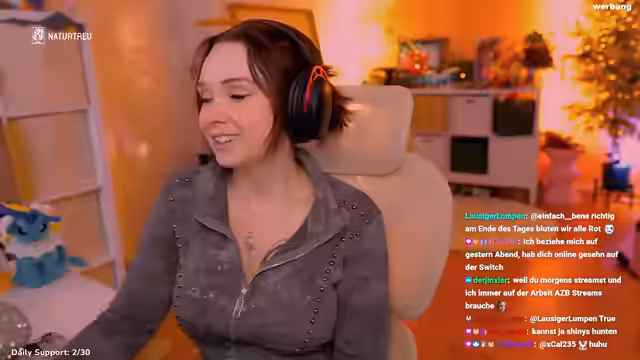 00:09:08Der Stream beginnt früh am Morgen, wobei die Streamerin sehr erschöpft und übermüdet wirkt. Sie begrüßt die Zuschauer, erwähnt, dass sie gerade Make-up aufgetragen hat, um nicht zu erschrecken und berichtet über ihren gestressten Zustand. Ihr Kater Chonk ist ebenfalls anwesend und schläfrig. Sie kündigt an, dass sie später nach Hamburg zu einem König-der-Löwen-Musical fahren wird und deshalb früh beginnen wollte, um mehr Zeit mit den Zuschauern zu verbringen.