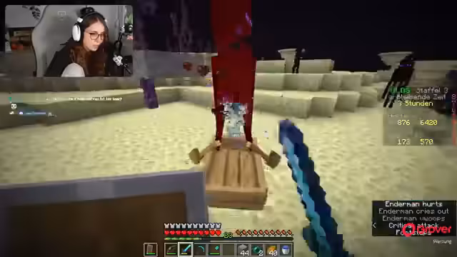 02:31:07Auf der verzweifelten Suche nach Enderperlen geht zuletzt auch ein Enderman verloren, der in Lava fällt. Dies führt zu massiven Frustrationen und den Beschwerden über das 'scheiß Schwein', also den Spielcharakter. Die Situation verschlimmert sich, als der Streamer merkt, dass er aus Zeitgründen Fehler wie das Nicht-Bauen eines Boots gemacht hat, was die Probleme im Endgame massiv vergrößert.