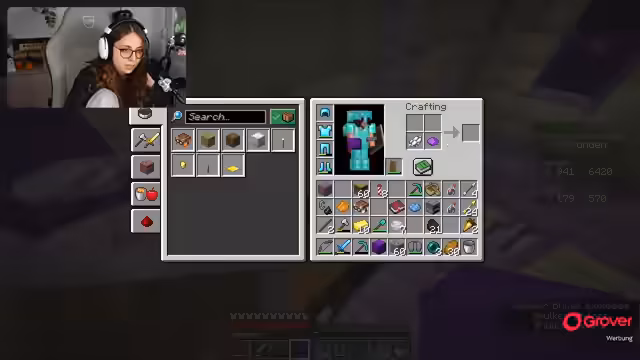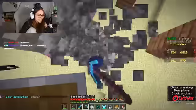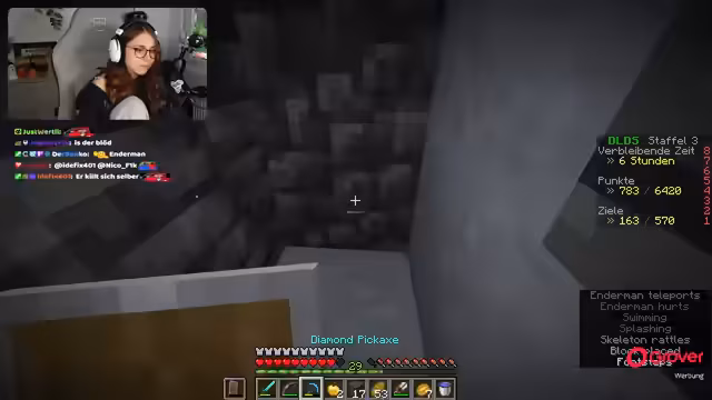 01:07:01Nach dem Erfolg in der üppigen Höhle kehrt der Streamer zur Nether-Festung zurück. Nach einigen Verwirrungen und Verlusten gelingt es ihm, mit Hilfe von Enderperlen den Stronghold zu erreichen. Dort muss er die Koordinaten für das End-Portal bestimmen und beginnt mit dem Bau eines Zugangs. Die Gänge des Strongholds sind jedoch gefährlich und voller Silberfische, was den Voranschritt weiter verlangsamt.