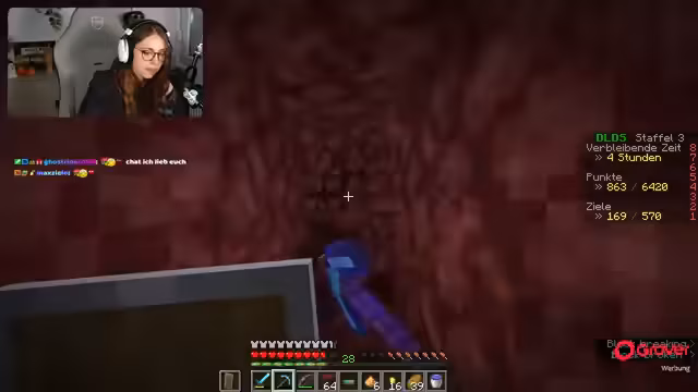 04:15:57Die verbleibenden Zeit wird genutzt, um die letzten verpassten Achievements nachzuholen. Der Streamer listet verschiedene Aufgaben auf, wie das Scheren eines Schneegolems oder das Färben von Wolle, die noch erledigt werden müssen. Es stellt sich jedoch das Problem, dass wichtige Ressourcen wie Lapislazuli oder bestimmte Blöcke fehlen. Trotzdem wird versucht, das Beste aus der Situation zu machen und verfügbare Materialien zu nutzen, um so viele Punkte wie möglich zu sammeln.