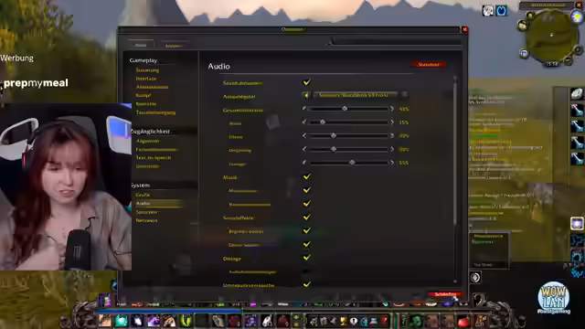 01:54:40Vor dem Wiedereinstieg ins Spiel treten mehrere technische Schwierigkeiten auf. Feli ist im falschen Realm und muss zurückwechseln. Sie hat Angst, aufgrund des ungewohnten Setups zu sterben. Auch Probleme mit der Mikrofonlautstärke, Stream Together und dem Push-to-Mute-Funktion werden angesprochen, was zu einer unterbrochenen Vorbereitung führt.