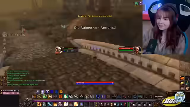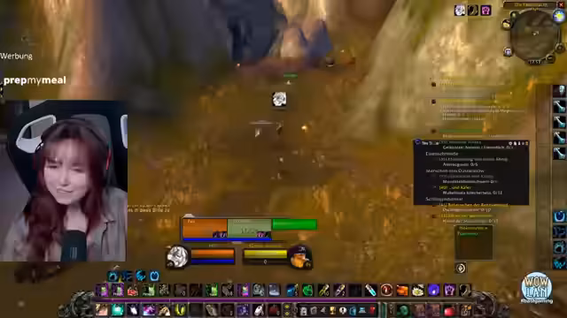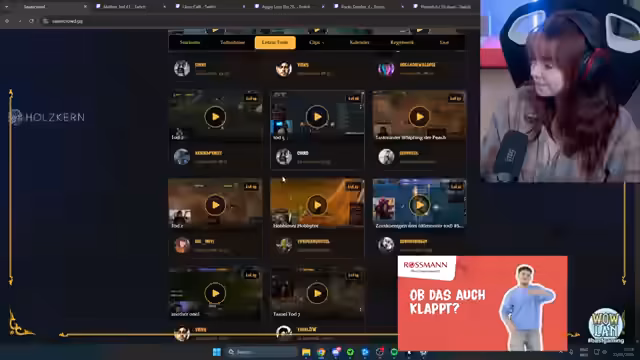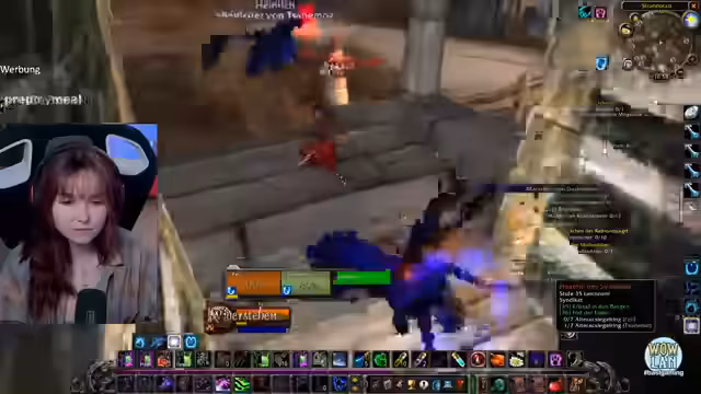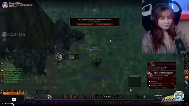 01:23:52Nachdem die technischen Vorbereitungen abgeschlossen sind, beginnt Feli damit, mit Jasmin über Discord die Todesclips aus dem World of Warcraft-Spielverlauf zu analysieren. Sie konzentrieren sich auf den Tod ihres Mitstreiters Bleach, der im Level 26 bereits viermal gestorben ist, und diskutieren die Gefahren durch spezielle Gegner wie Fireball Caster, die besonders hohen Schaden verursachen und für den Tod verantwortlich waren.