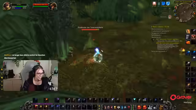 04:38:05Nach einigen Startschwierigkeiten und dem Überwinden von Koordinationsproblemen beginnt die Streamerin gemeinsam mit einem Mitspieler, Quests im Teufelswald anzunehmen. Sie konzentrieren sich auf die Quest 'Gyromasts Rettung' und 'The Sleeper is Awakened'. Sie agieren als eingespieltes Team, teilen sich das Ziel und agieren koordiniert im Kampf, um mehrere Gegner gleichzeitig effizient zu besiegen und maximale Erfahrungspunkte zu sammeln. Dies demonstriert eine Phase guter Synergie im Spiel.