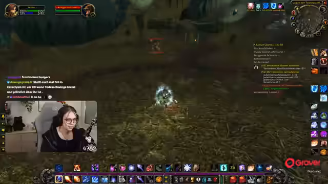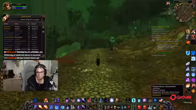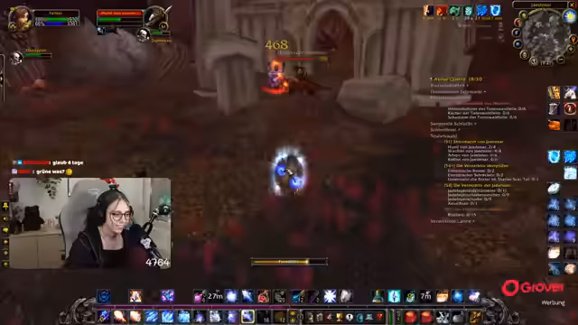 00:07:31 Und du hast sogar mal was Richtiges gegessen. Also ich habe nicht gefrühstückt, ich bin quasi direkt mit dem Mittagessen reingestarrt in den Tag, was ich eigentlich gar nicht mag. Aber na gut, ich habe jetzt was Richtiges gegessen und bin jetzt genau ready für WoW. Okay, kurze Halli-Runde. Halli-Kati, Halli-Piti, Halli-Shyli, Halli-Max, Halli-Roselini, Halli-Niko, Halli-Idefik, Halli-Franki, Halli-Mika, Greifi, was geht, Benni, was geht, Incro, was geht.
