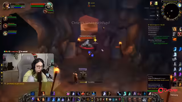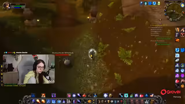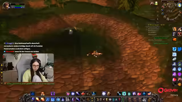 01:02:02Der Stream beginnt mit dem Ziel, Essenzfarmen für einen Mage zu Level 60 zu betreiben. Zuerst werden Gegner in den Eb-Bauten angegriffen und das Ziel ist es, eine Gruppe von vier Spielern zu haben. Der Streamer sammelt dabei Elemente wie Stacheln und stößt auf einige technische oder interaktive Probleme, darunter Diskussionen über den Mute-Status im Chat und die allgemeine Questfortschritt im Spiel.